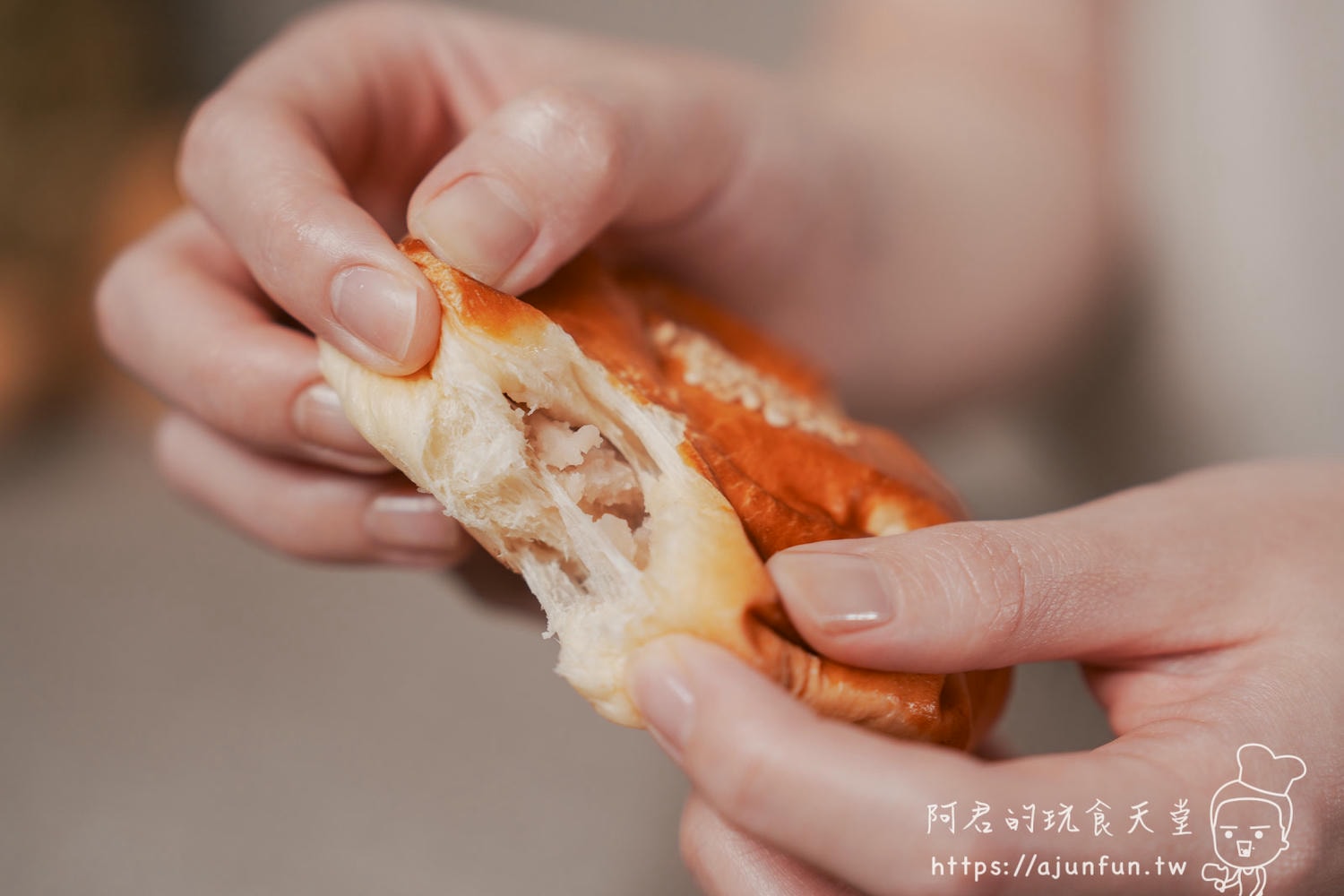 他們家的吐司,口感柔軟綿密,還散發著淡淡的奶香,就像嬰兒的肌膚一樣滑嫩細緻。據說,他們家的吐司水含量鮮奶高達55%,難怪吃起來這麼濕潤。