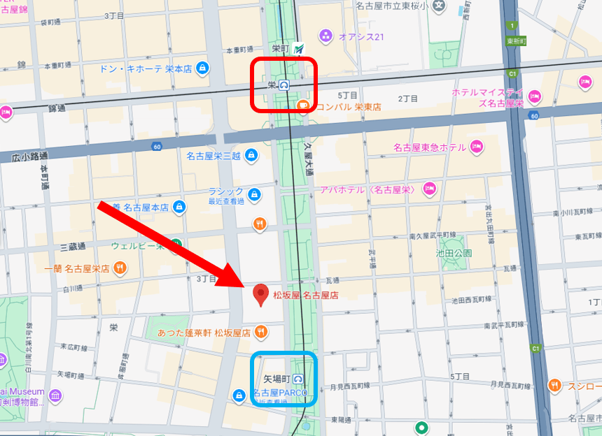 當然,從地下鉄東山線或名城線的「栄」駅下車,從16號出口往南走個5分鐘也能到。 如果你本來就在榮商圈逛街,這個選項也很方便。