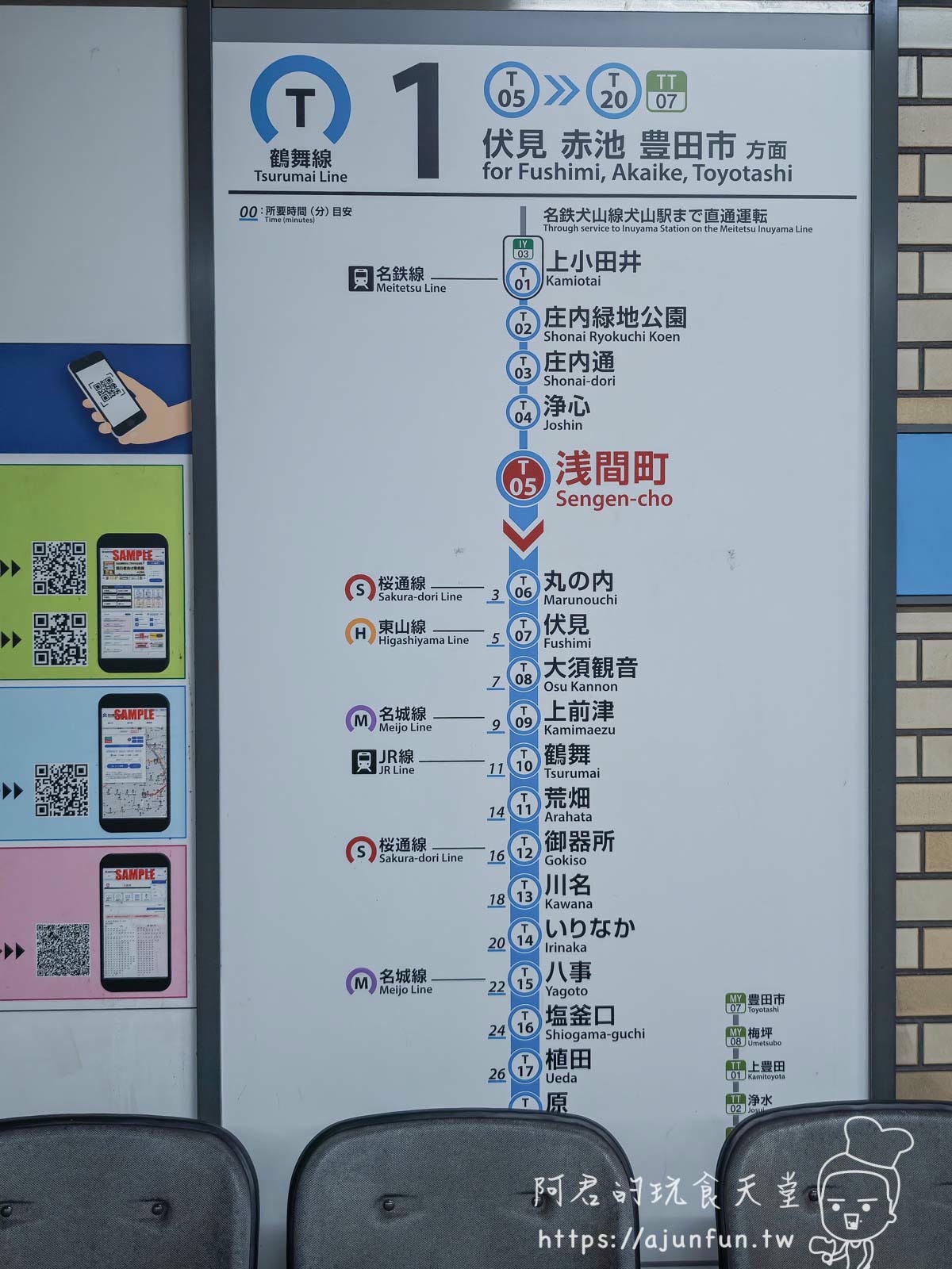 A: 最快最簡單的方式是搭乘名古屋市營地下鐵。從「名古屋」站搭 東山線 到「伏見」站(1站),然後轉乘 鶴舞線 到「大須觀音」站(1站)。全程包含轉車大約只需要15分鐘,非常方便。