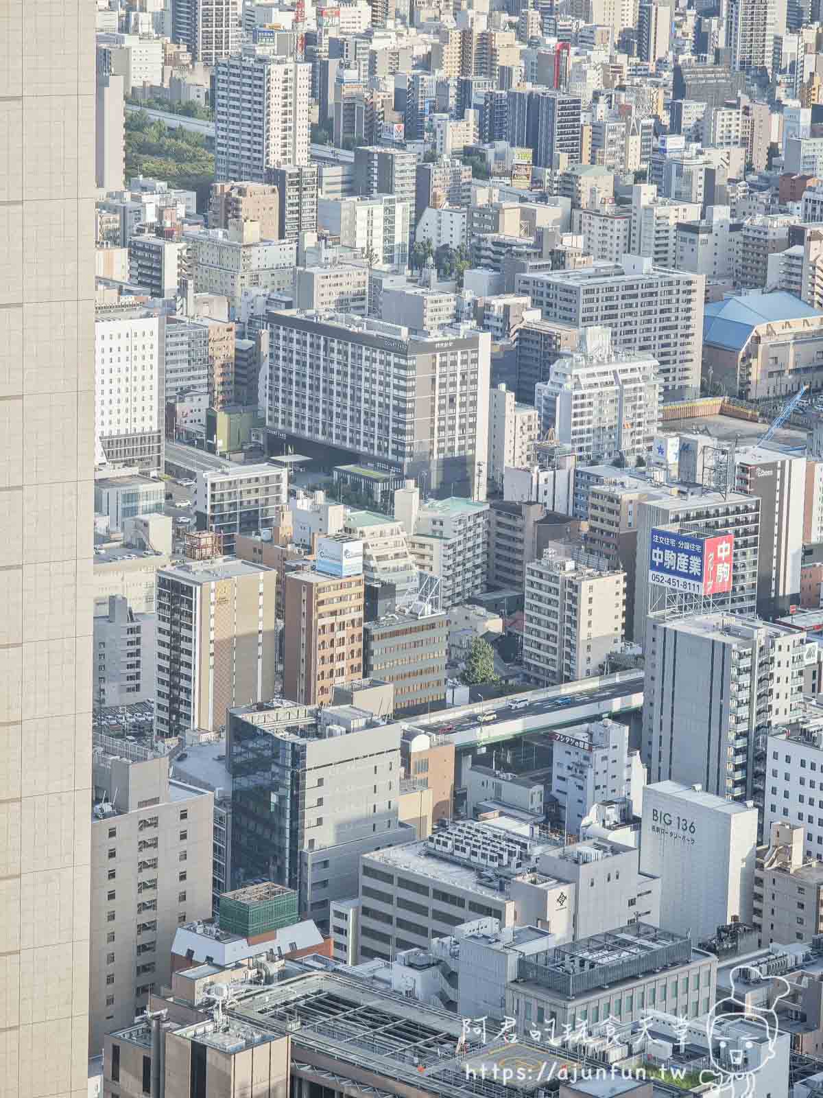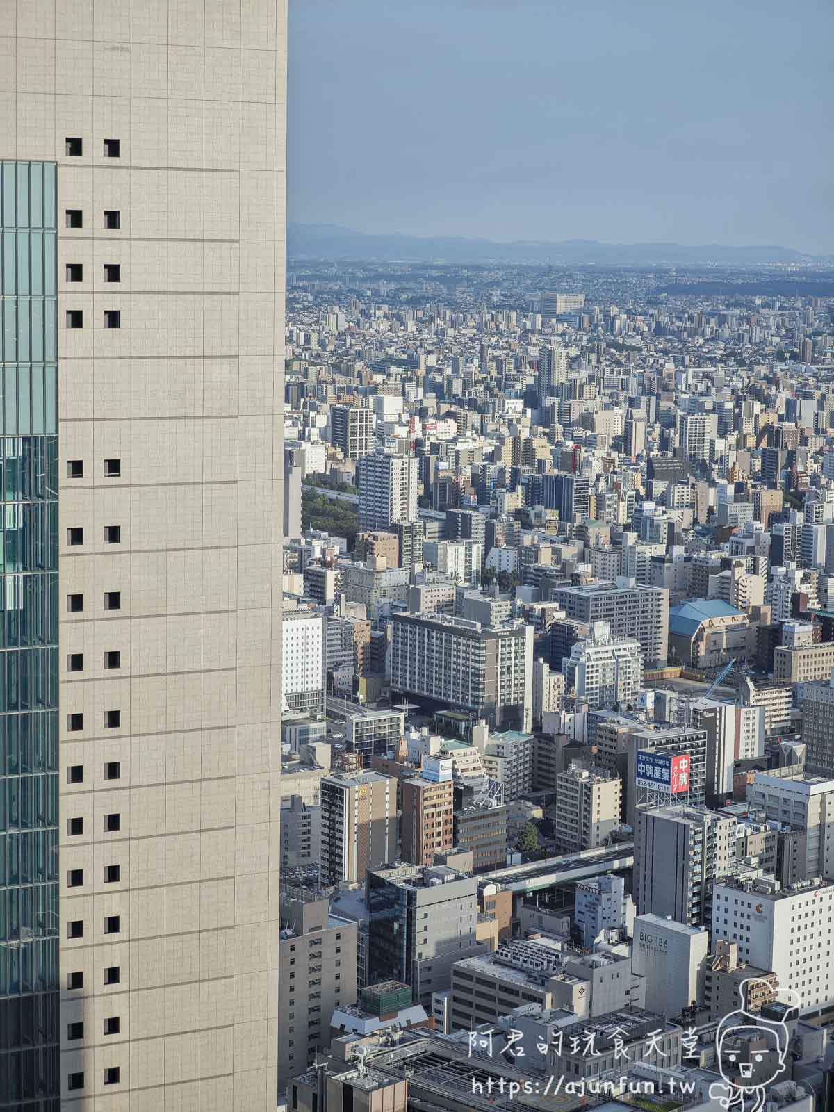 我們超幸運地被安排在窗邊的位子,看著腳下的名古屋市,車子像火柴盒,大樓像積木,那一刻真的有種「君臨天下」的錯覺。