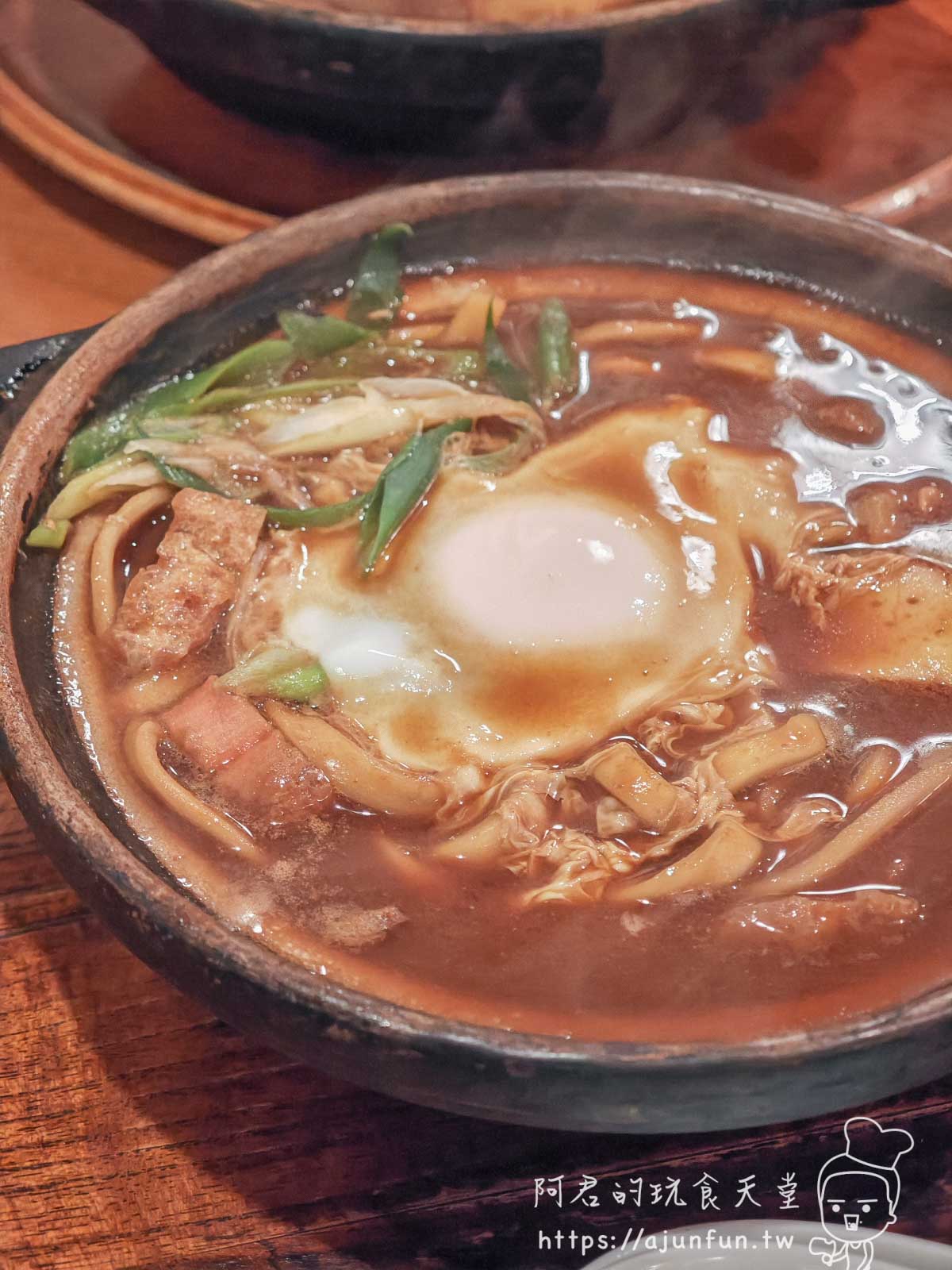 用信樂燒土鍋盛裝的烏龍麵,上桌時還在眼前猛烈地滾燙沸騰著,光畫面看就覺得全身都暖了起來。
