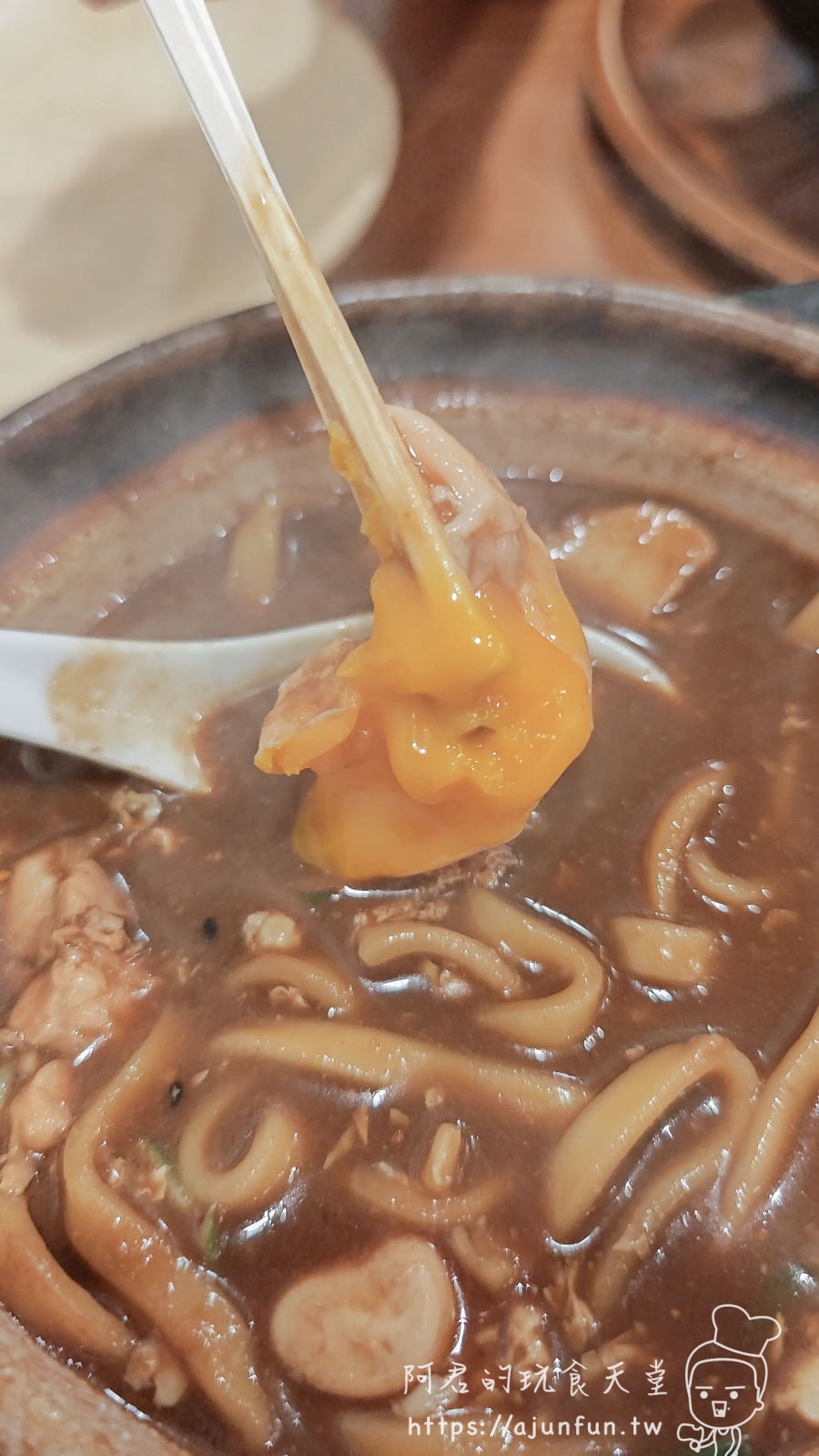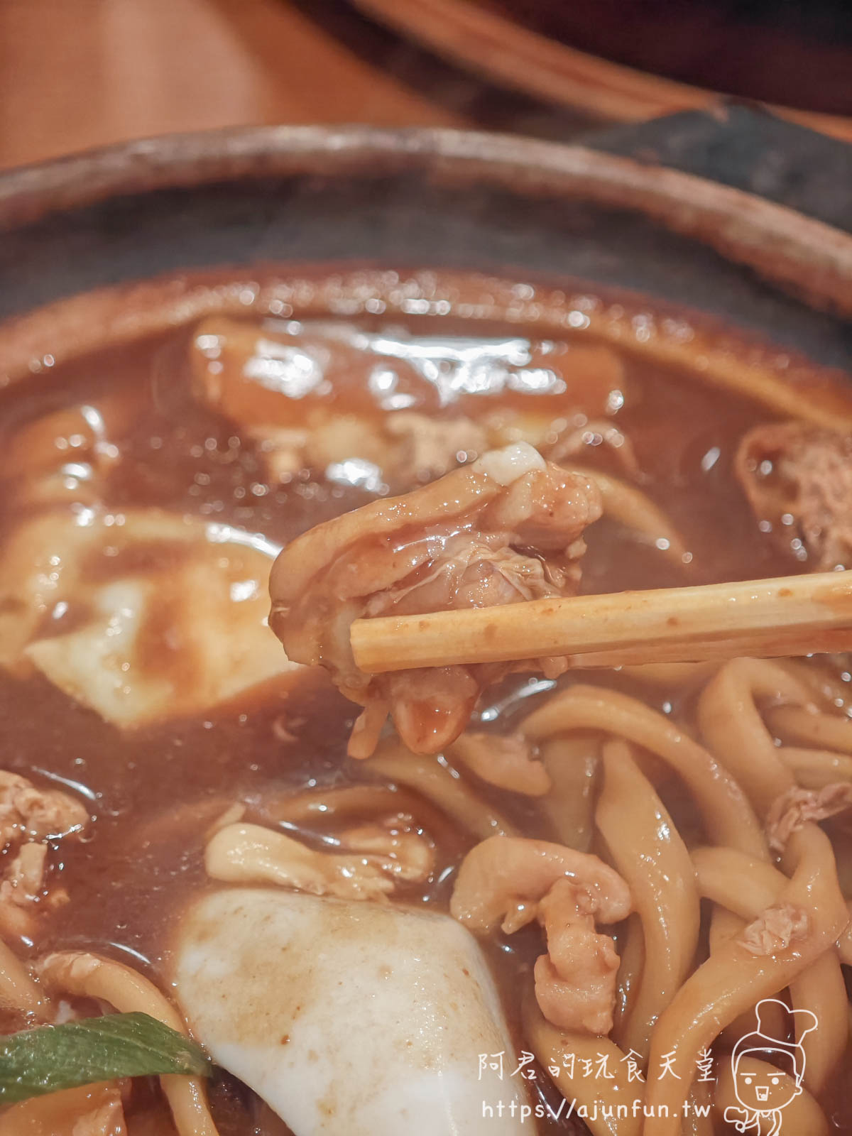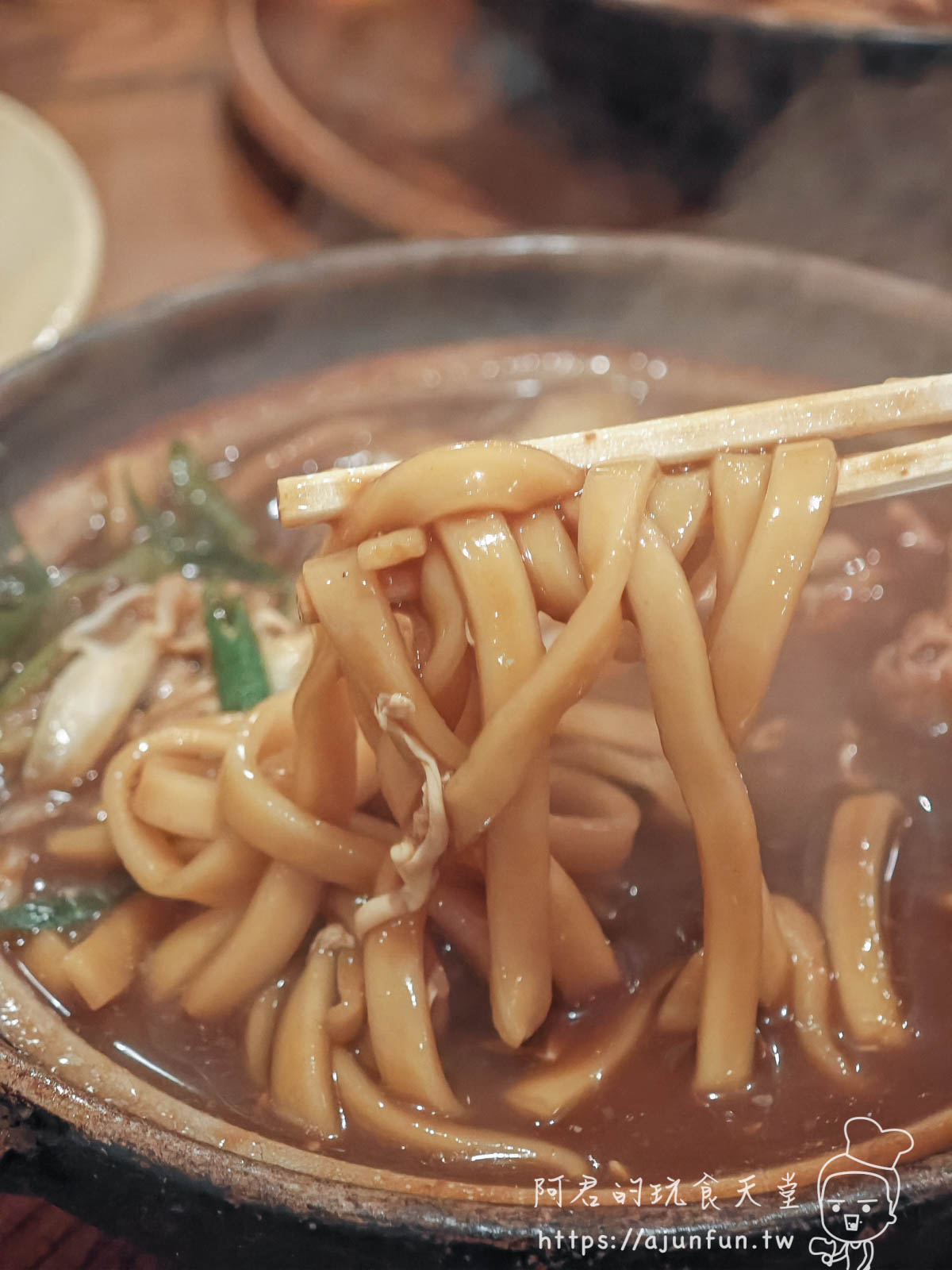 最特別的是那為了在土鍋中保持勁道、刻意保留偏硬麵芯的烏龍麵。